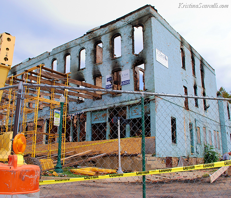 The Thompson Block photographed one day after the fire on September 23, 2009.